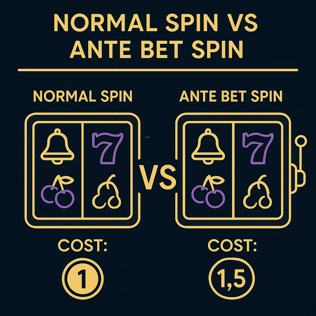 Ante Bet on tasuline lühike tee parema boonusmängu juurde. See ei muuda võiduvõimalusi, kuid suurendab kulusid, kiirust ja volatiilsust. Tahtlikult kasutades võib see luua põnevaid sessioone; hooletult kasutades kiirendab see kaotusi.