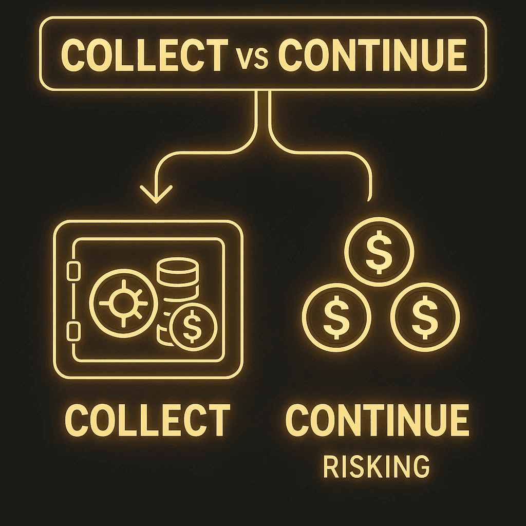 Oluline: see ei ole „boonusgarantii” ega muuda tulevaste keerutuste juhuslikkust. See muudab lihtsalt teie otsustuspunkti: võtke, mis teil praegu on, või jätkake mängimist, et saada võimalus veelgi enamaks.